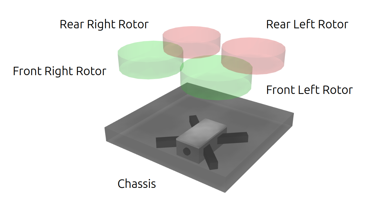 Let's also add a virtual rotor device. Add the following under the elements of the CHASSIS link: Append the following to "drone.body."